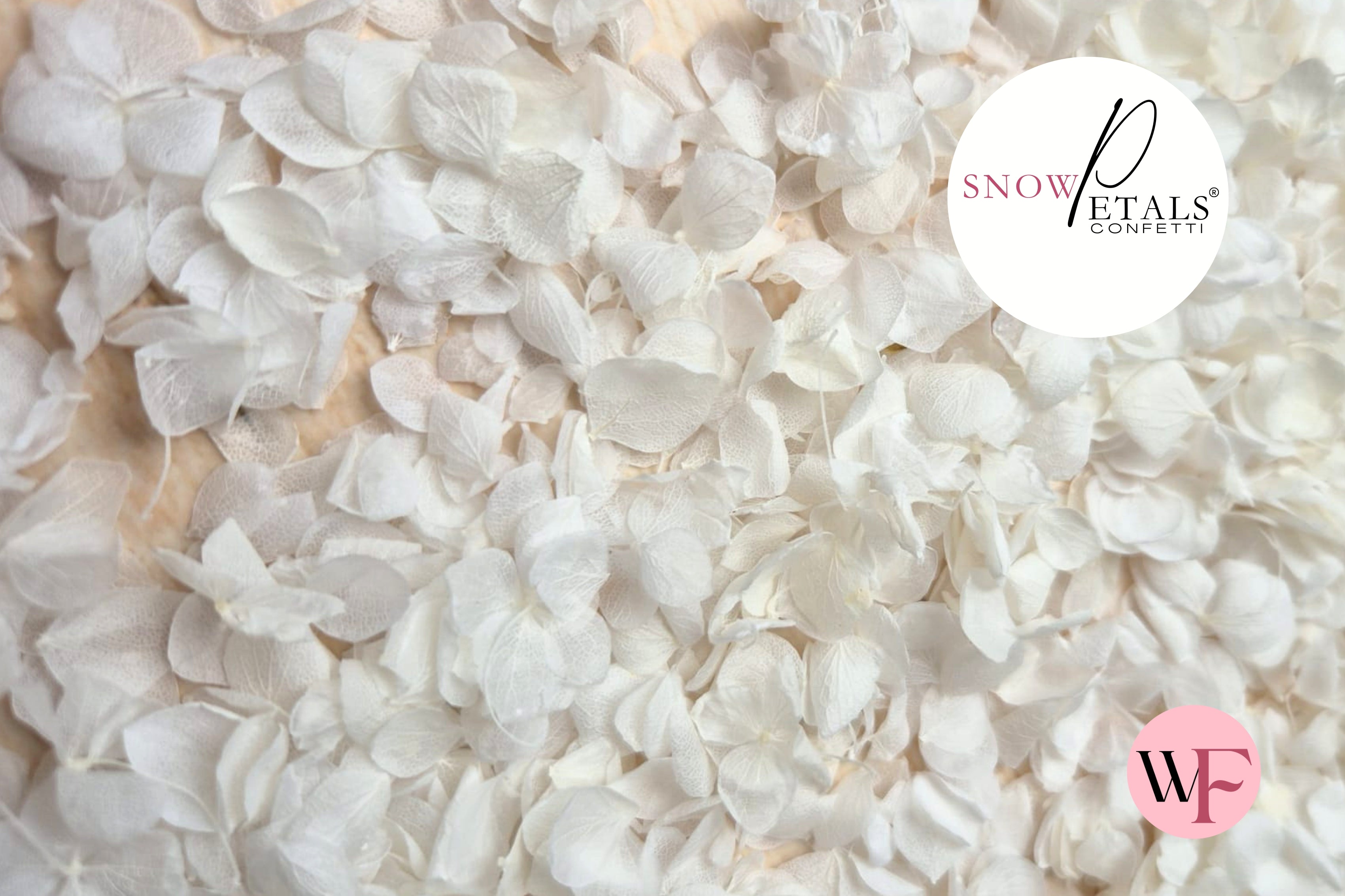 Delicate as Snowflakes, Beautiful as Nature Our Snow Petals® are the softest, most delicate confetti in our collection – like a gentle snowfall on your special day. Made from preserved hydrangea petals, these tiny, feather-light petals flutter beautifully and create the most magical confetti moments.Why Choose Snow Petals®?Ultra-soft & delicate – Small, snow-like petals that feel as gentle as they lookGenerous coverage – Up to 20 servings per litre thanks to their petite size100% natural – Preserved hydrangea petals, biodegradable and eco-friendlyBeautiful colour range – Available in many shades including pure white like fresh snow, soft pastels, and elegant blends