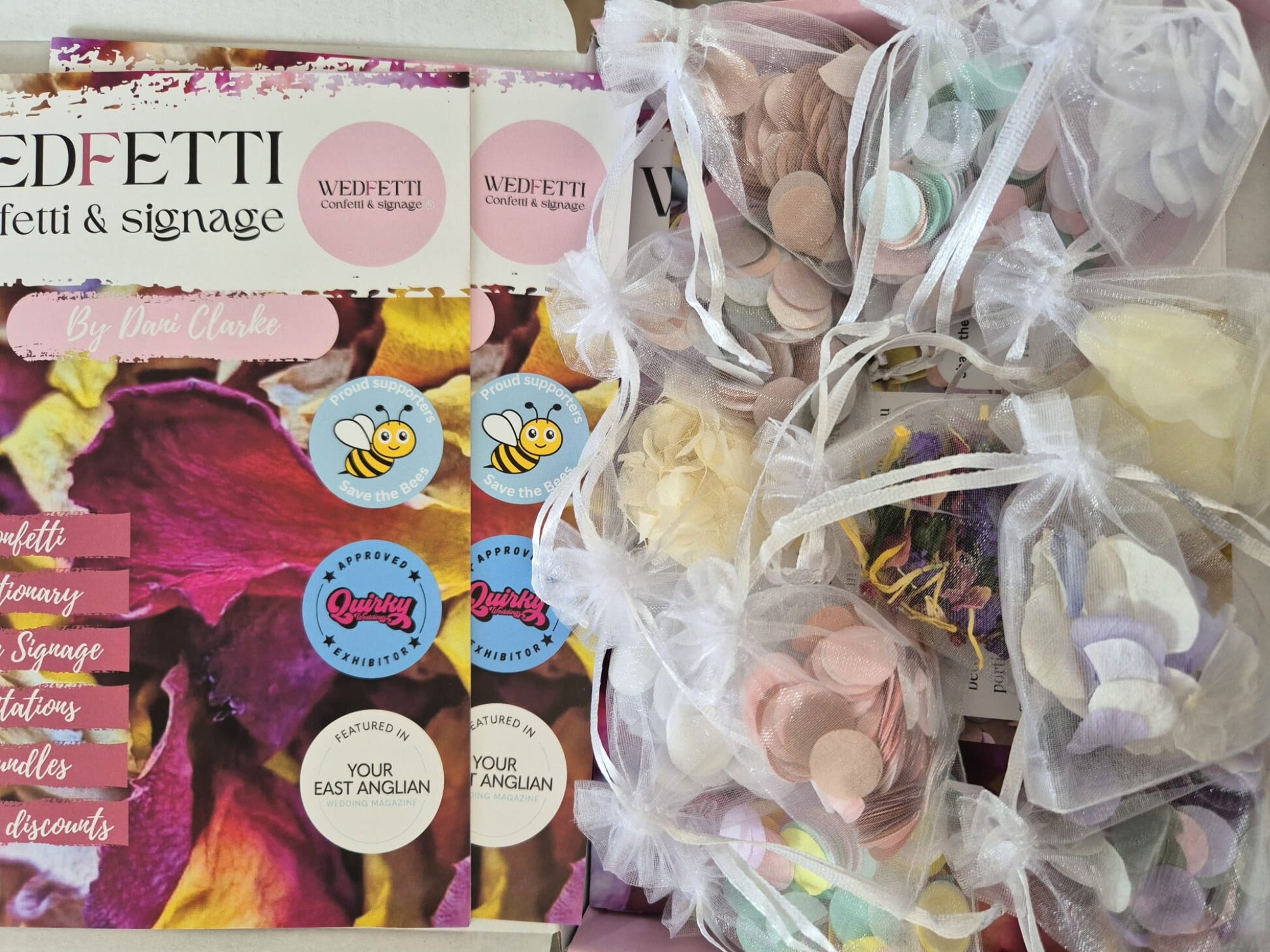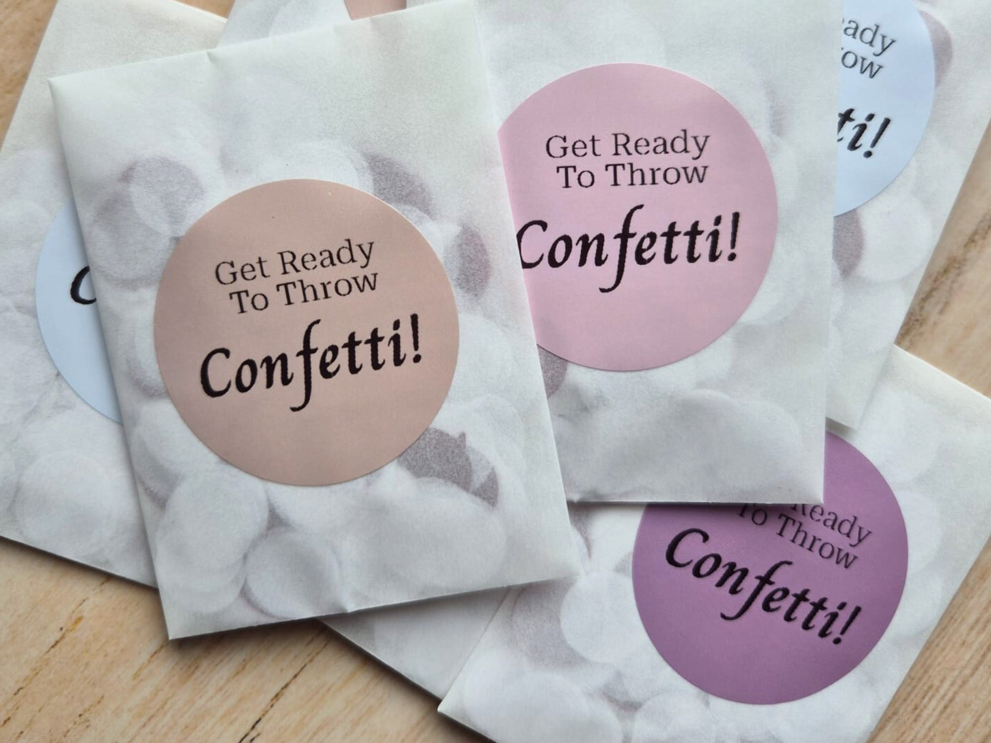 Decide on your exact confetti colours, packaging type, and whether you want personalized packets or confetti cannons. If choosing personalized packets, finalize your design and wording now.