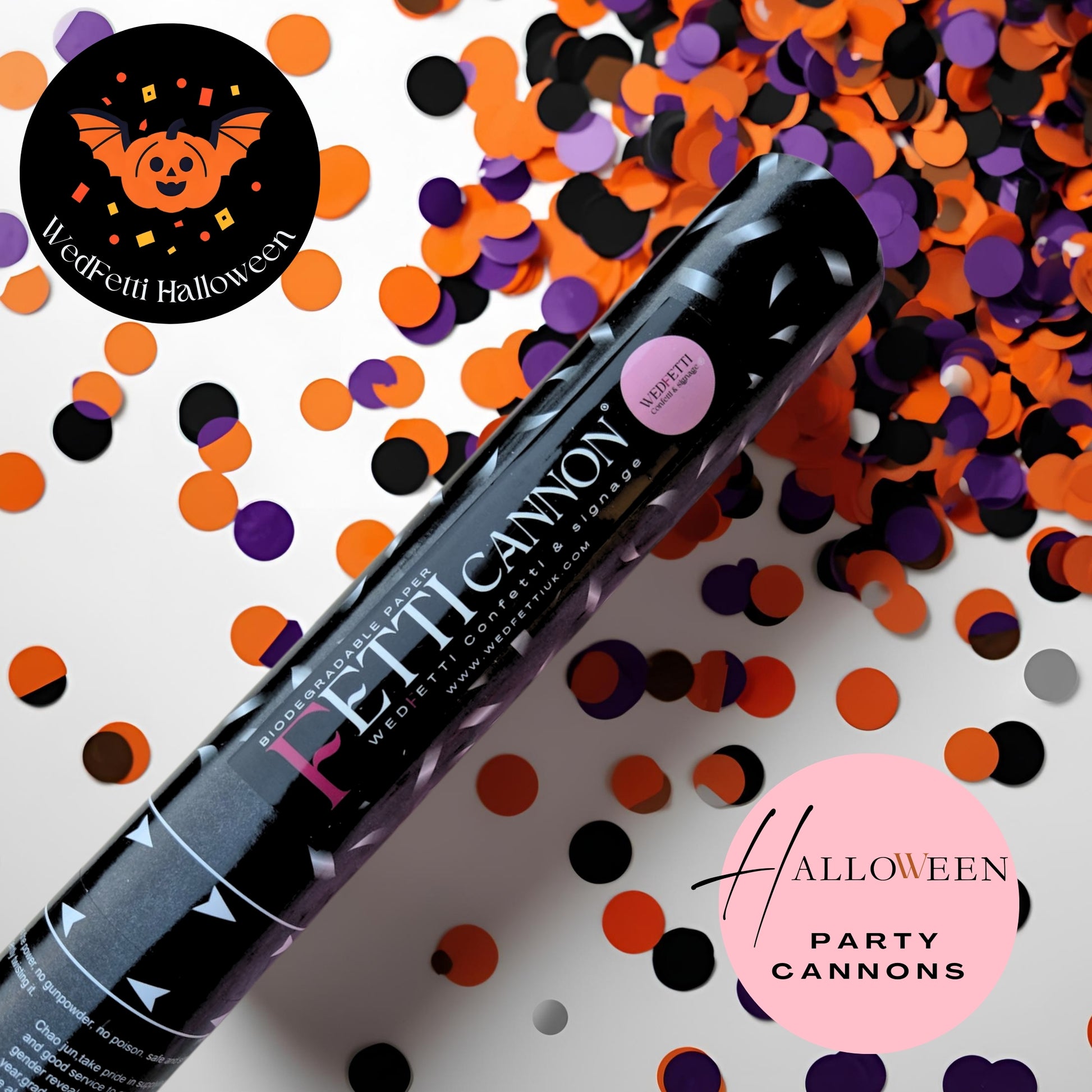 The 30cm cannons come pre filled with 20 grams of your choice of biodegradable paper confetti, where as the 60 cm cannons come filled with 40 grams of biodegradable paper confetti.