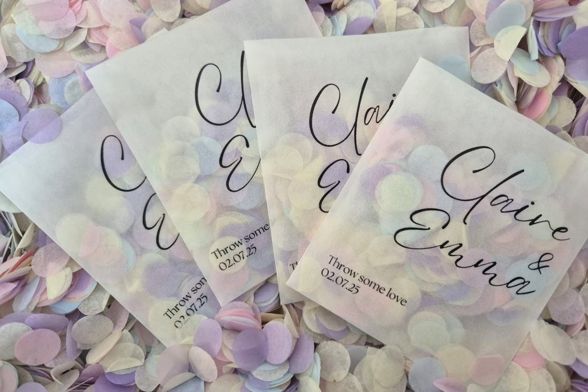 These empty packets are the perfect way to contain and distribute your confetti! Designed to hold various types of confetti, our packets are durable and easy to use, and biodegradable