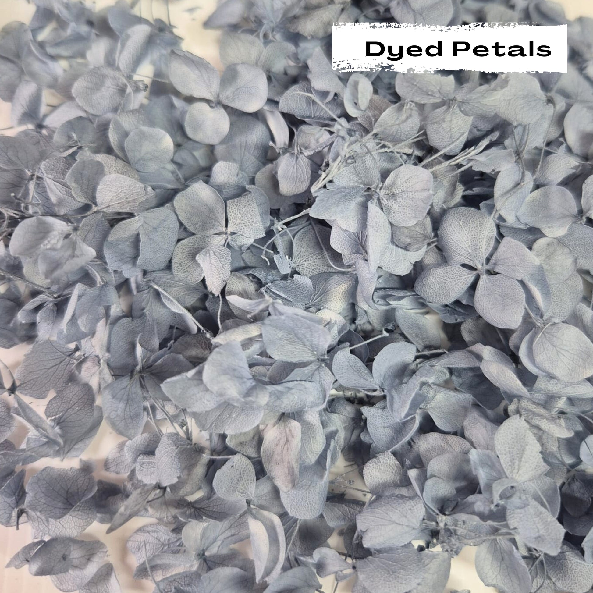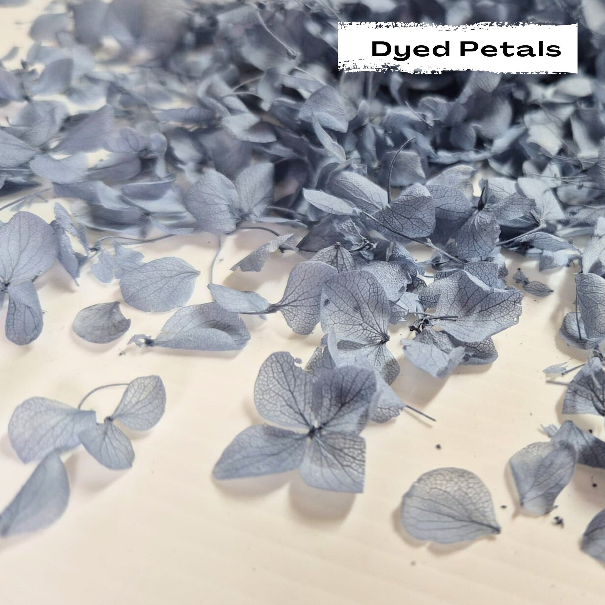 Medium SLOW FALLING, PICTURESQUE This product offers a beautiful Dusty Blue shade of dyed hydrangea petals, extremely light & delicate, creating a colorful and natural confetti option. These real petals are biodegradable, making them an eco-friendly choice for any event, while also providing a stunning visual display.