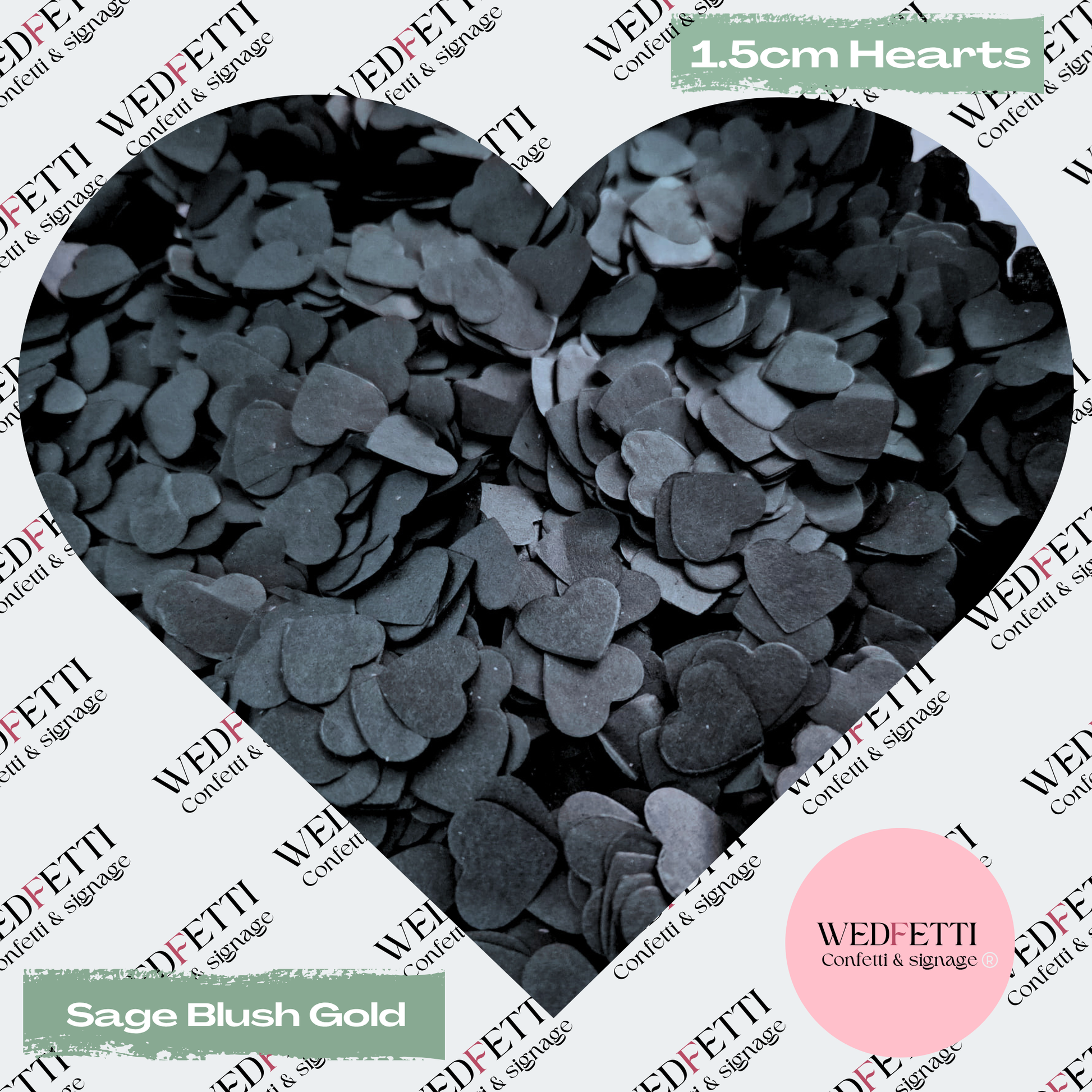 Slow falling, Biodegradable paper Confetti Hearts that are 1.5cm in diameter, you can either purchase in single servings which are either Small, Medium, and Large servings, or available to purchase in weighed grams.