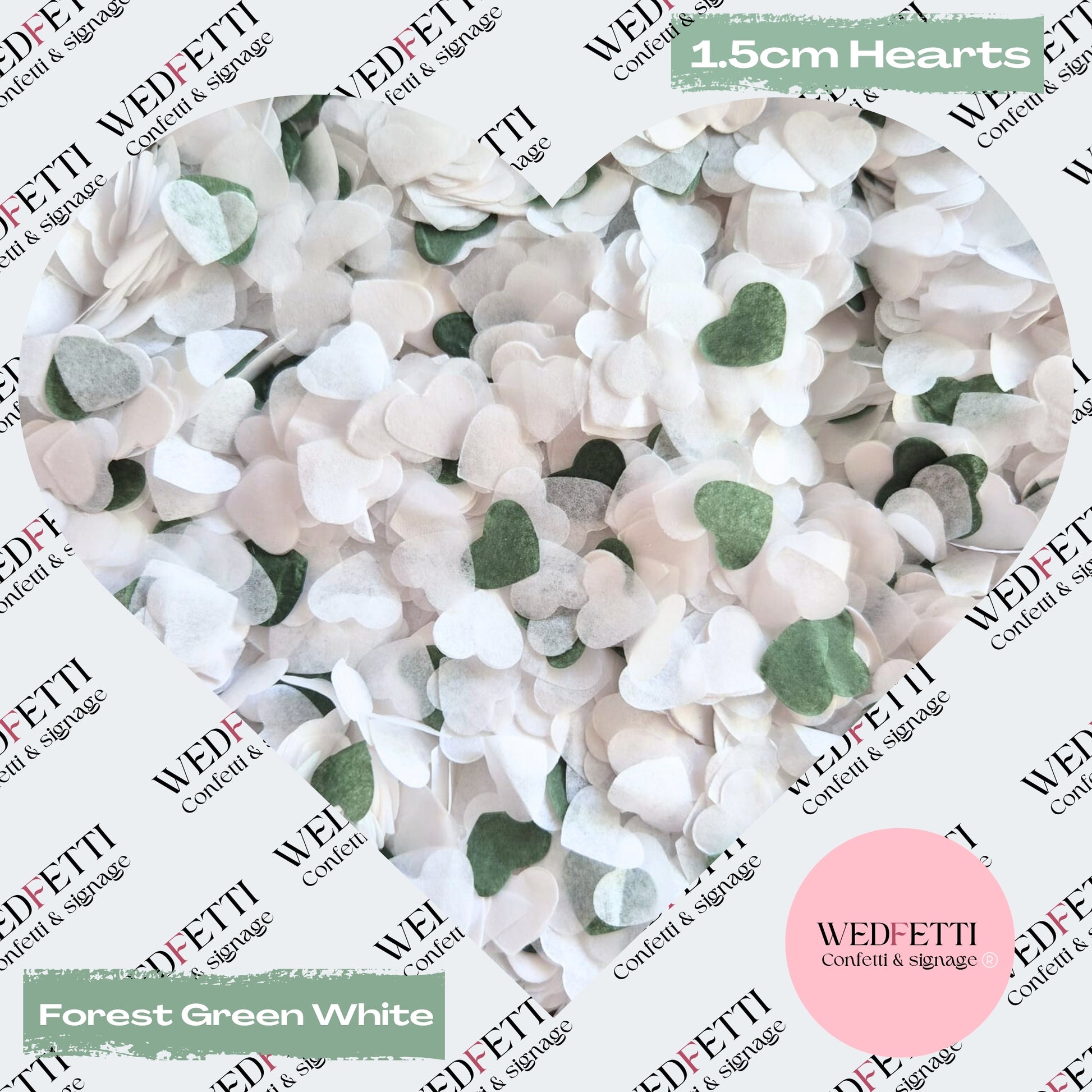 Slow falling, Biodegradable paper Confetti Hearts that are 1.5cm in diameter, you can either purchase in single servings which are either Small, Medium, and Large servings, or available to purchase in weighed grams.