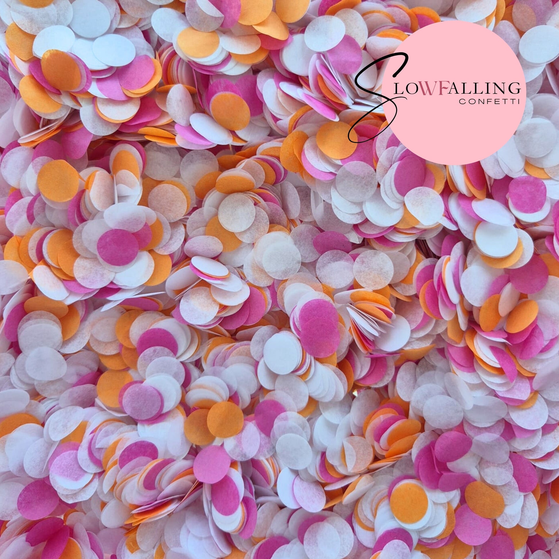 Slow falling, Biodegradable paper Confetti circles that are 1.5cm in diameter, you can either purchase in single servings which are either Small, Medium, and Large servings, or available to purchase in weighed grams.