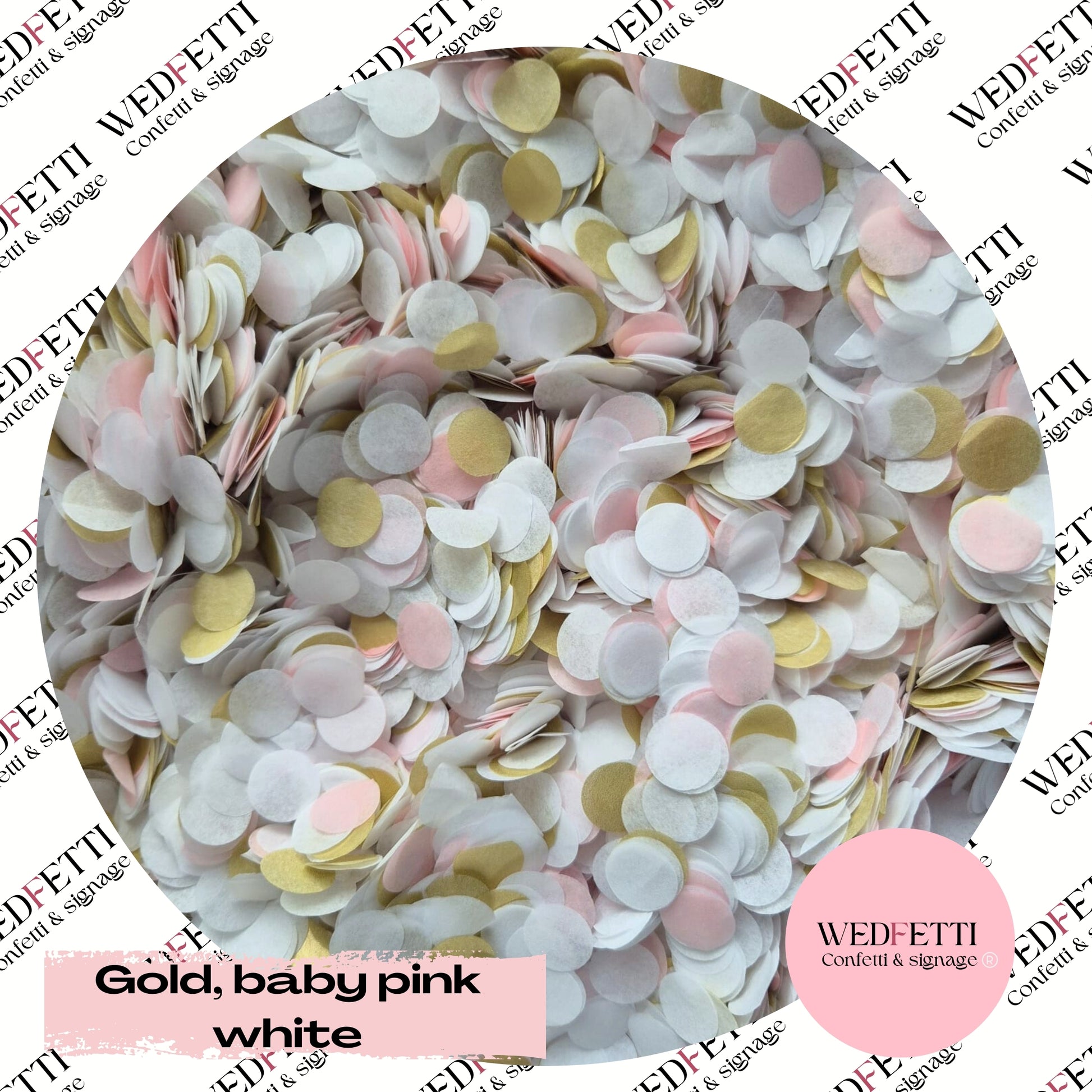 Slow falling, Biodegradable paper Confetti circles that are 1.5cm in diameter, you can either purchase in single servings which are either Small, Medium, and Large servings, or available to purchase in weighed grams.