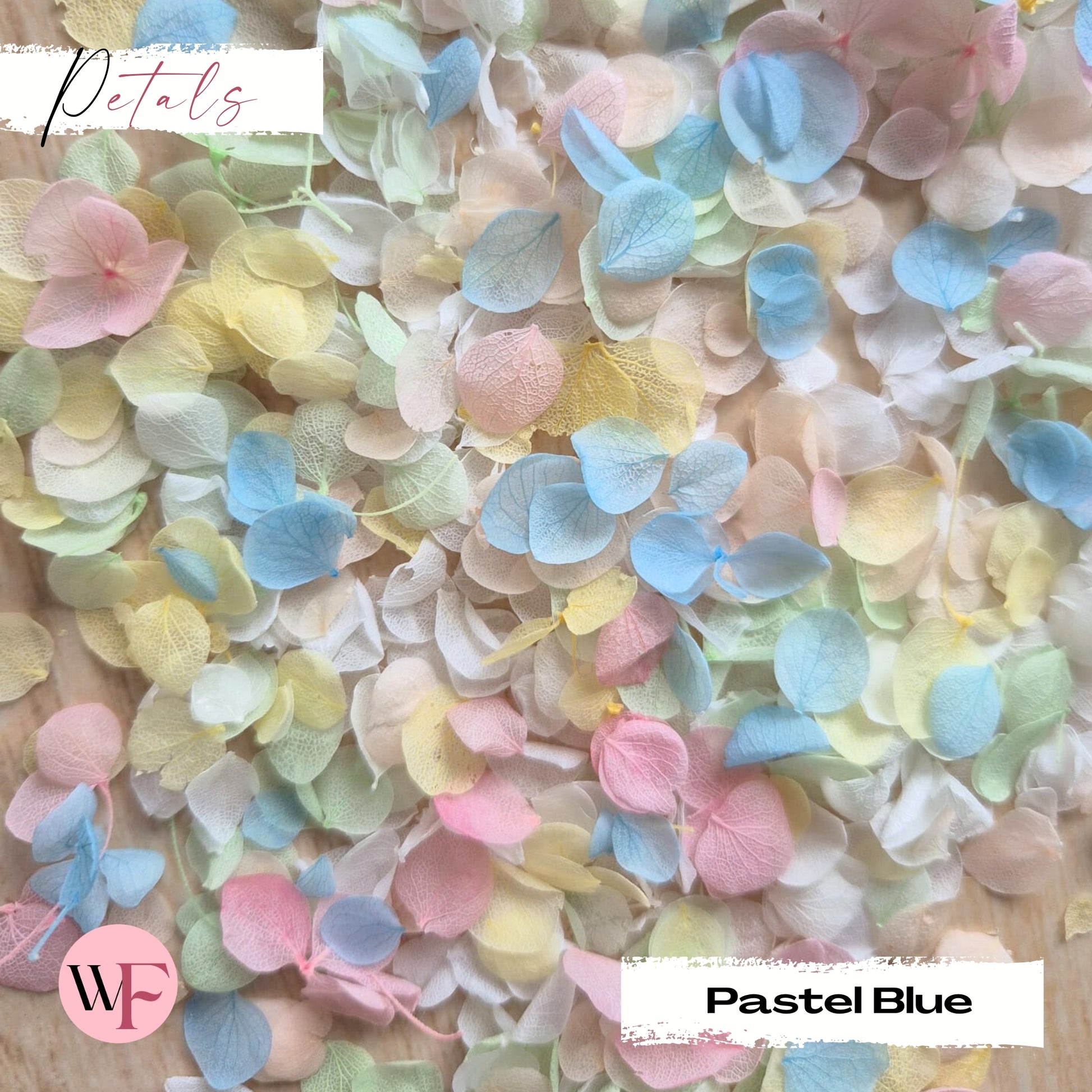 SLOW FALLING, PICTURESQUE This product offers a beautiful  blend of hydrangea petals, inspired by Wedfetti's "pastel party paper mix" Extremely light, floaty, fluttery & delicate, creating a perfect natural confetti option. These real petals are biodegradable, making them an eco-friendly choice for any event, while also providing a stunning visual display.